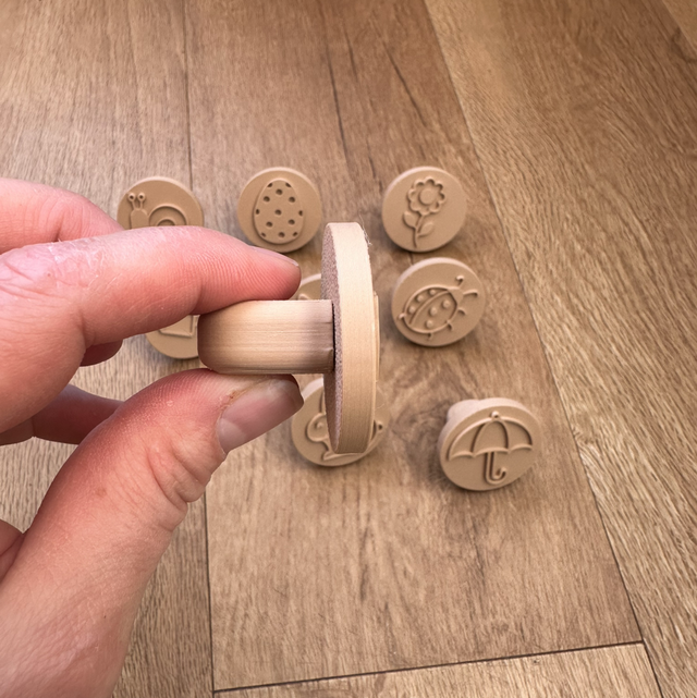 Elke stempel is voorzien van een unieke textuur of patroon die kinderen uitnodigt om te voelen, rollen, stempelen en ontdekken. Ze zijn ideaal te gebruiken met kinetisch zand, klei, speelrijst of zoutdeeg en stimuleren op een speelse manier de fijne motoriek, tastzin en fantasie.